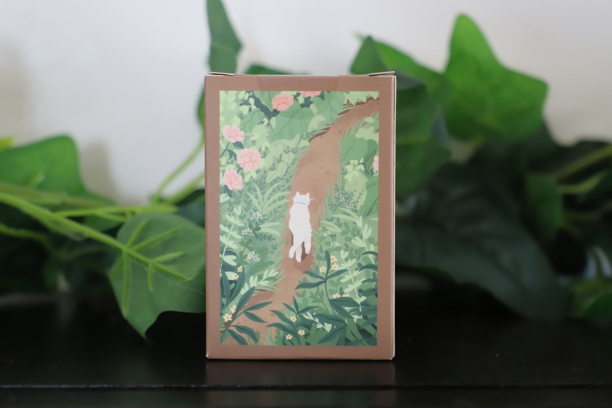The Trevell Pathway mini puzzle is a mini puzzle consisting of 99 pieces. This mini puzzle depicts an adorable little white cat strolling along a green path, surrounded by beautiful colorful flowers. A scene full of softness and freshness. It is illustrated by Nicolle Lalonde.