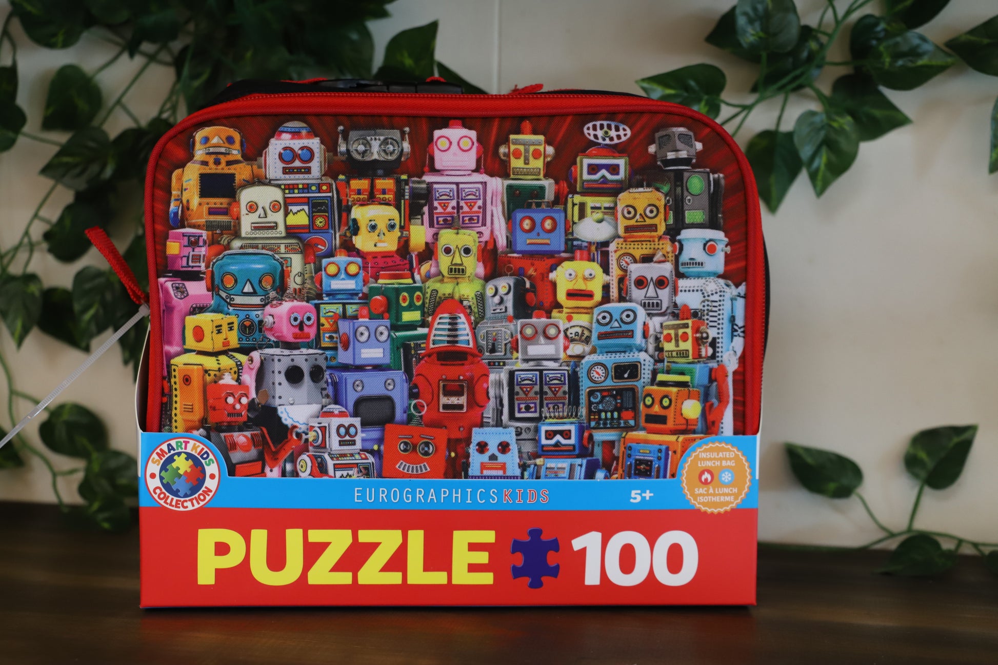 100 piece jigsaw puzzle and matching insulated lunch box! Finished puzzle size: 48.5cm x 33cm.