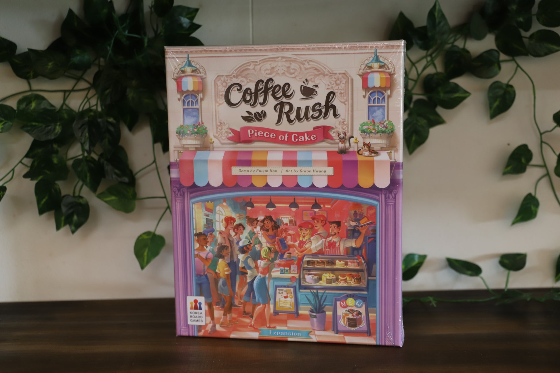 The Coffee Rush: Piece of Cake expansion has players fulfill new orders with the help of cake cards. It adds new player boards, new order cards, beautiful 3D cakes, and new upgrades.