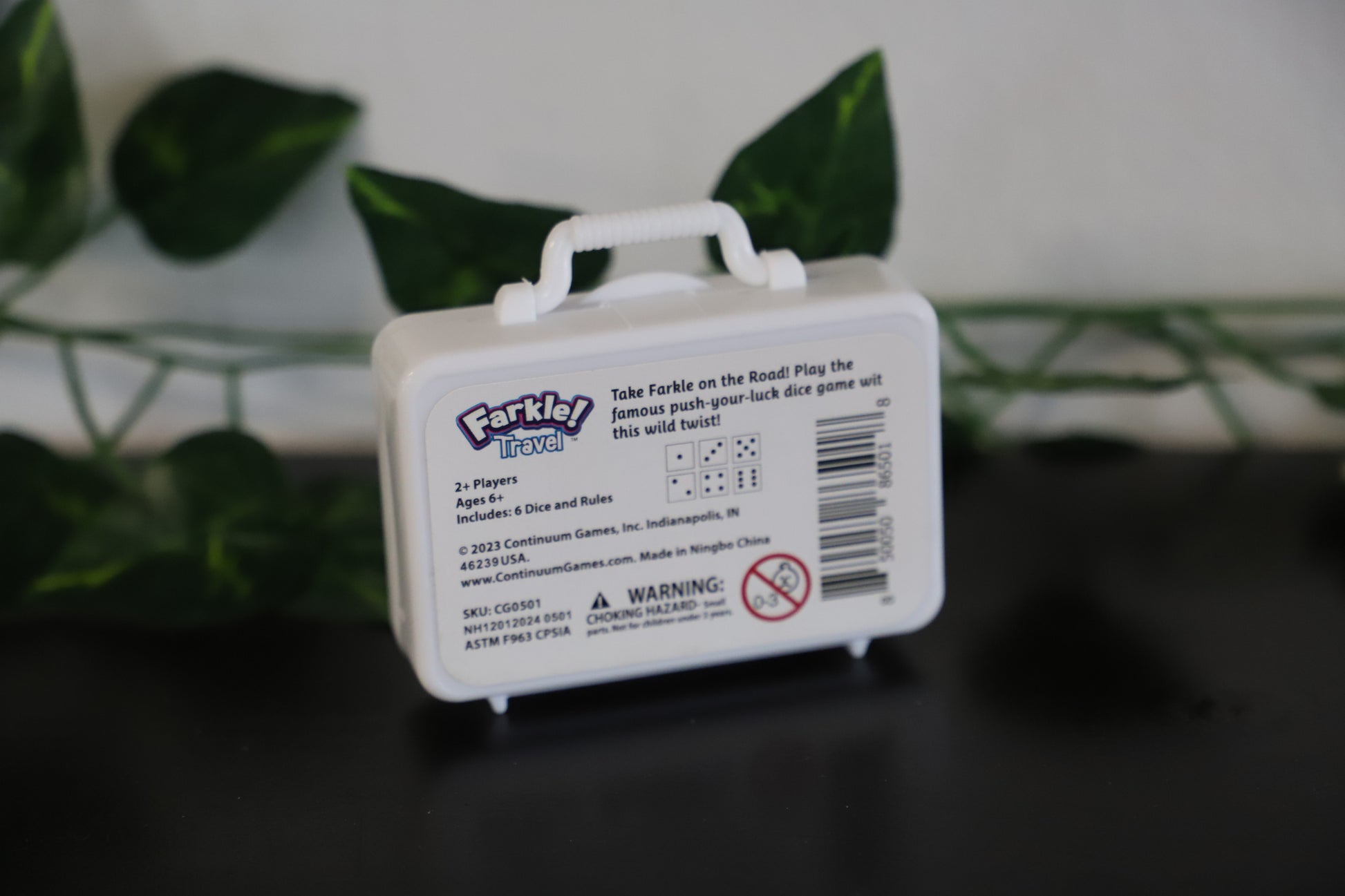 Farkle is a traditional press-your-luck dice game similar to Dix Mille, 5000, Cosmic Wimpout, and other such designs. Players roll five or six dice (depending on which version you play), then remove any dice they want to use for points. They can stop and score the points, or re-roll the remaining dice at the risk of scoring nothing in case the re-rolled dice do not score. Points are scored for specific numbers (1 or 5) or sets of the same number. If all dice have been used to score points, the player can pick up all of the dice and the player can keep going, again at the risk of scoring nothing for the current turn should the rolled dice have no points. The first player to 10,000 wins.