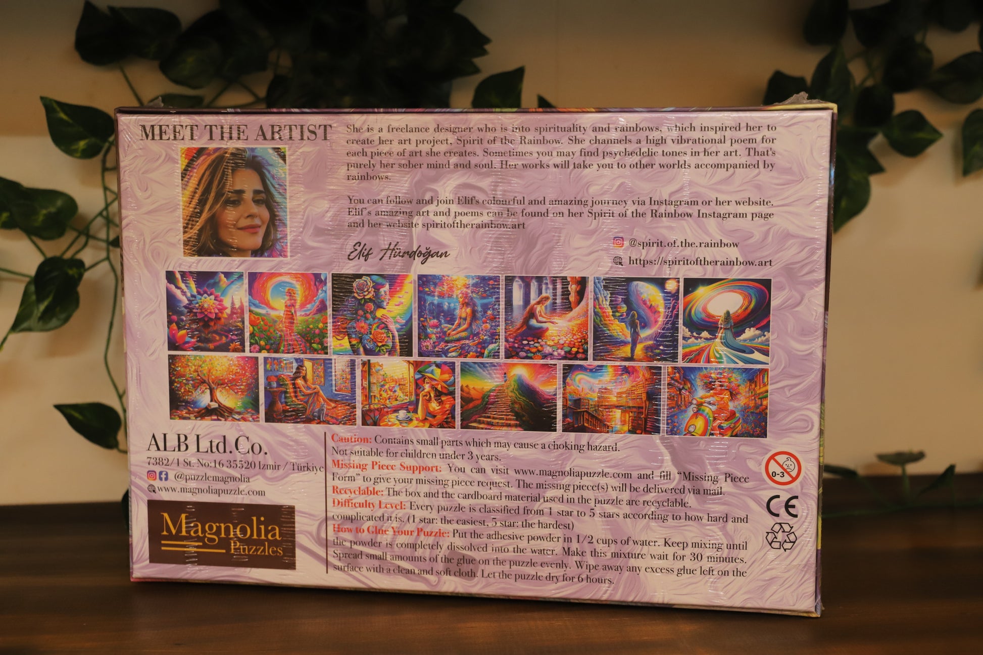 A true godess! Frameable piece, 1000 pieces, finished puzzle size: 68 x 48 cm. Magnolia Puzzles are a high quality puzzle company based in Türkiye. They specialize in brightly coloured illustrations from artists all over the world!