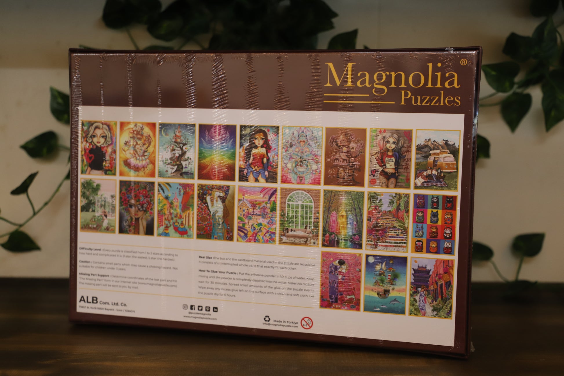 Gorgeous tree imprisoned in colour! Frameable piece, 1023 pieces, finished puzzle size: 60 x 60 cm. Magnolia Puzzles are a high quality puzzle company based in Türkiye. They specialize in brightly coloured illustrations from artists all over the world!