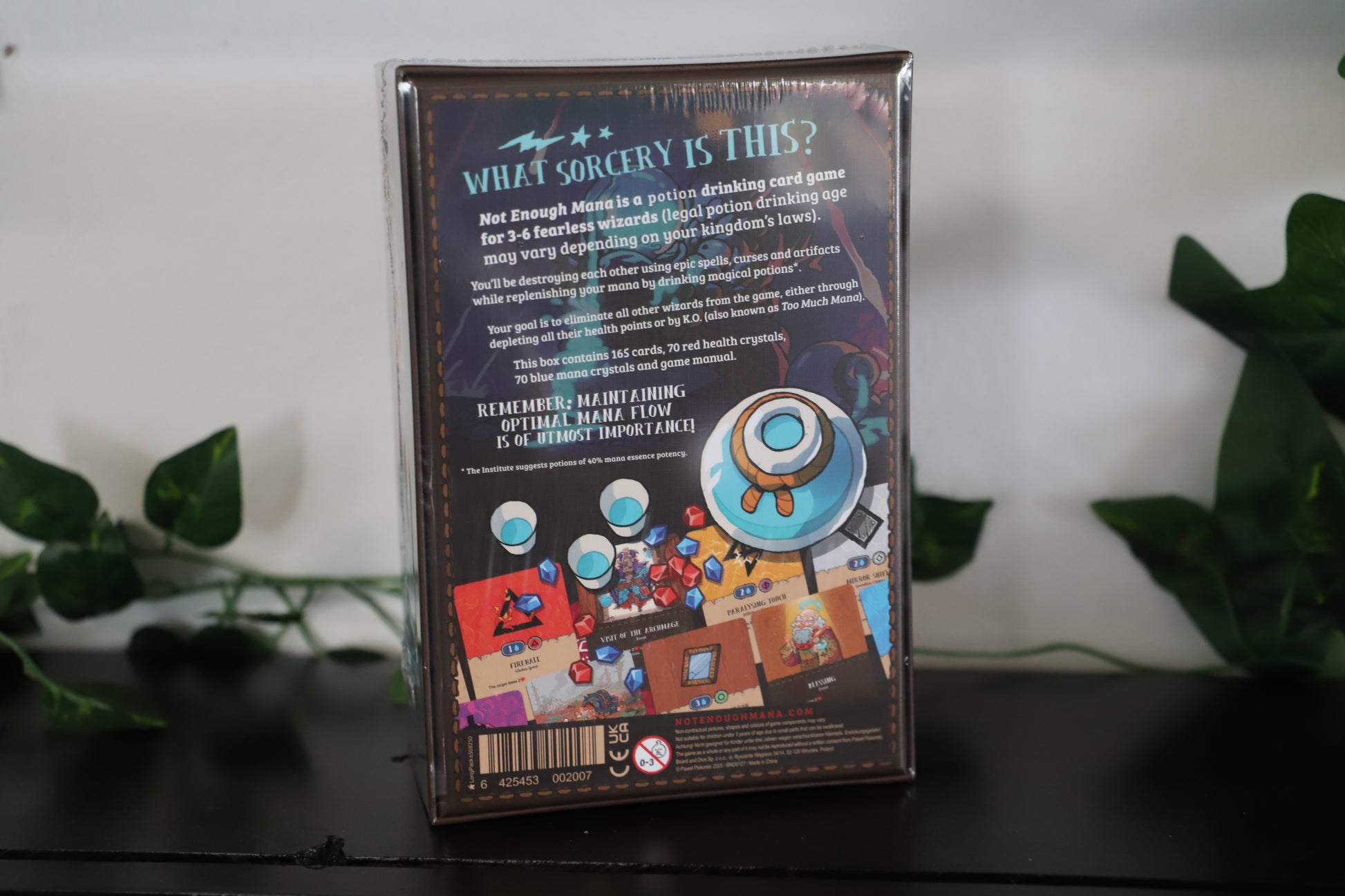 Not Enough Mana is a "potion" drinking card game for 3-6 fearless wizards (legal potion drinking age may vary depending on your kingdom’s laws). You’ll be destroying each other using epic spells, curses and artifacts while replenishing your mana by drinking magical potions*.