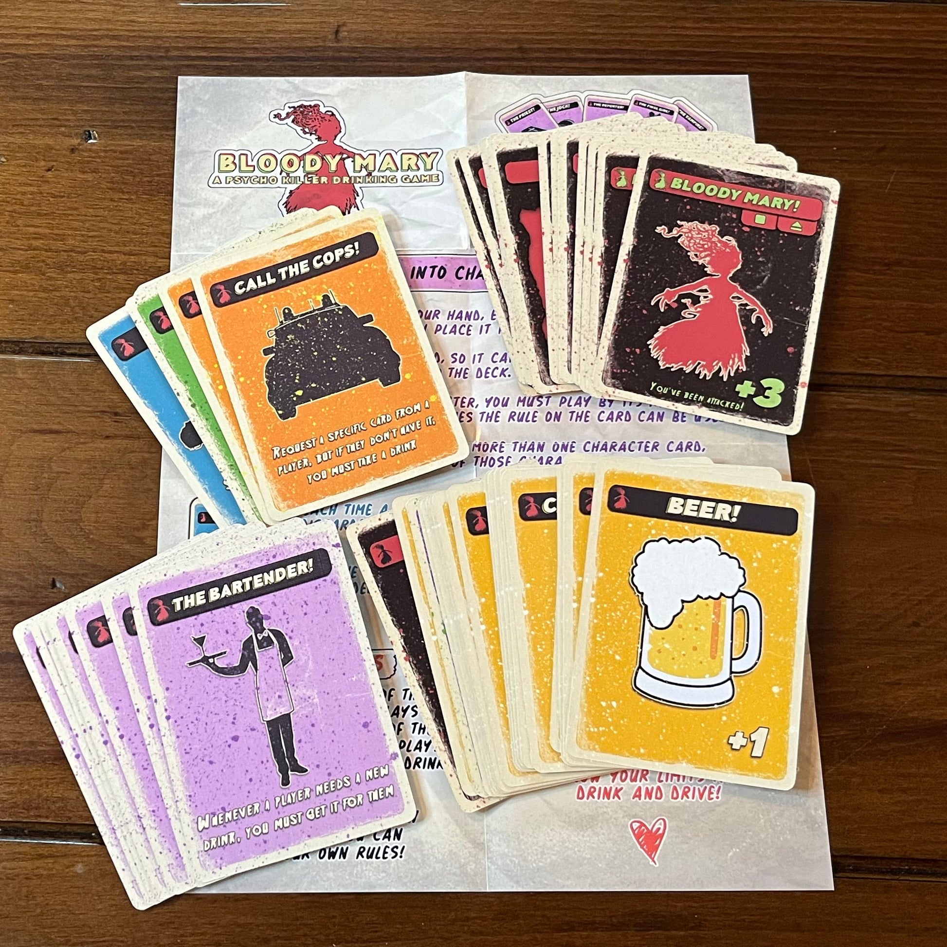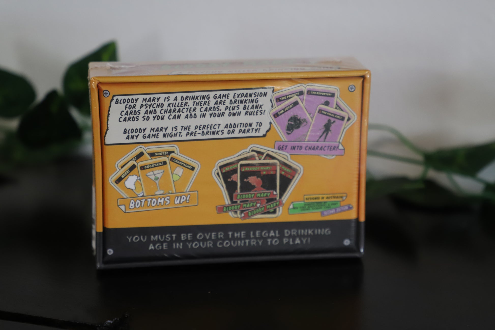 Bloody Mary is the drinking game expansion to Psycho Killer. There are drinking cards and character cards, plus blank cards so you can add in your own rules. Bloody Mary is the perfect addition to any game night, pre-drinks or party! Grab a drink and strap yourself in for a drinking game that is new and exciting while keeping the nostalgia of your favourite drinking games!
