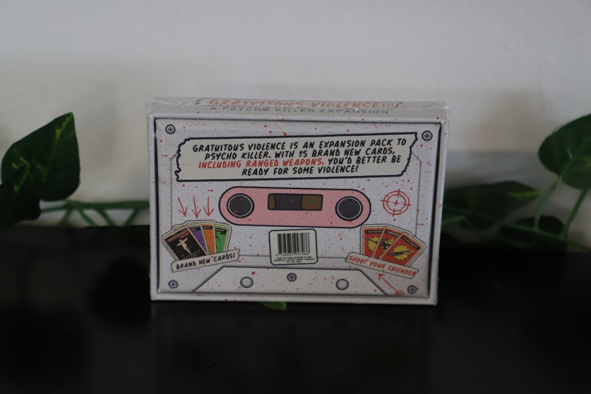 Gratuitous Violence is an expansion pack to Psycho Killer. With 15 brand new cards, including ranged weapons, you’d better be ready for some violence!