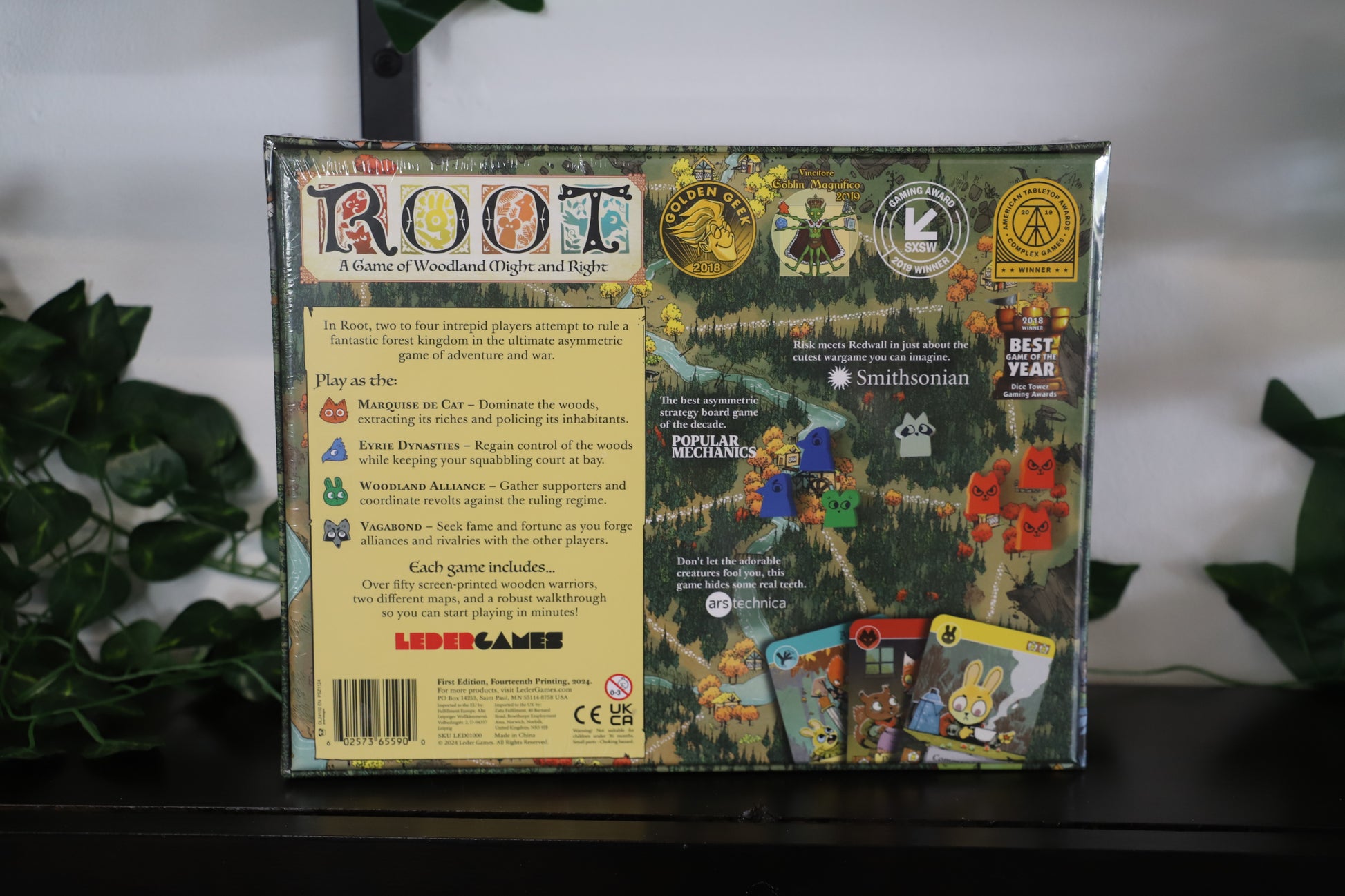 In Root, players drive the narrative, and the differences between each role create an unparalleled level of interaction and replayability. Leder Games invites you and your family to explore the fantastic world of Root!