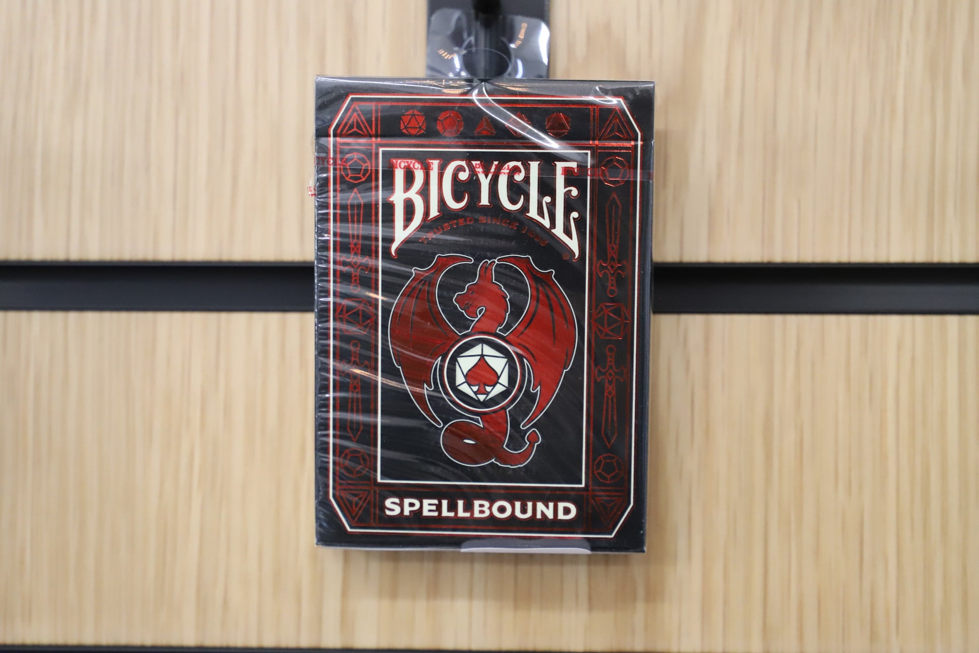 Step into a world of magic and mystery with Bicycle Spellbound Playing Cards. The ultimate deck for fantasy lovers and tabletop gamers. Every hand could lead to a critical hit thanks to a custom card back design featuring swords daggers dragons and polyhedral dice. Perfect for game nights collectors and fans of role-playing adventures.The tuck box shimmers with crimson-red foil accents making this deck a legendary treasure worthy of any adventurer's collection. Experience superior quality and performance of Bicycle s Air Cushion Finish - the proprietary embossing process for unmatched card playability; allowing them to glide smoother shuffle easier and last longer.